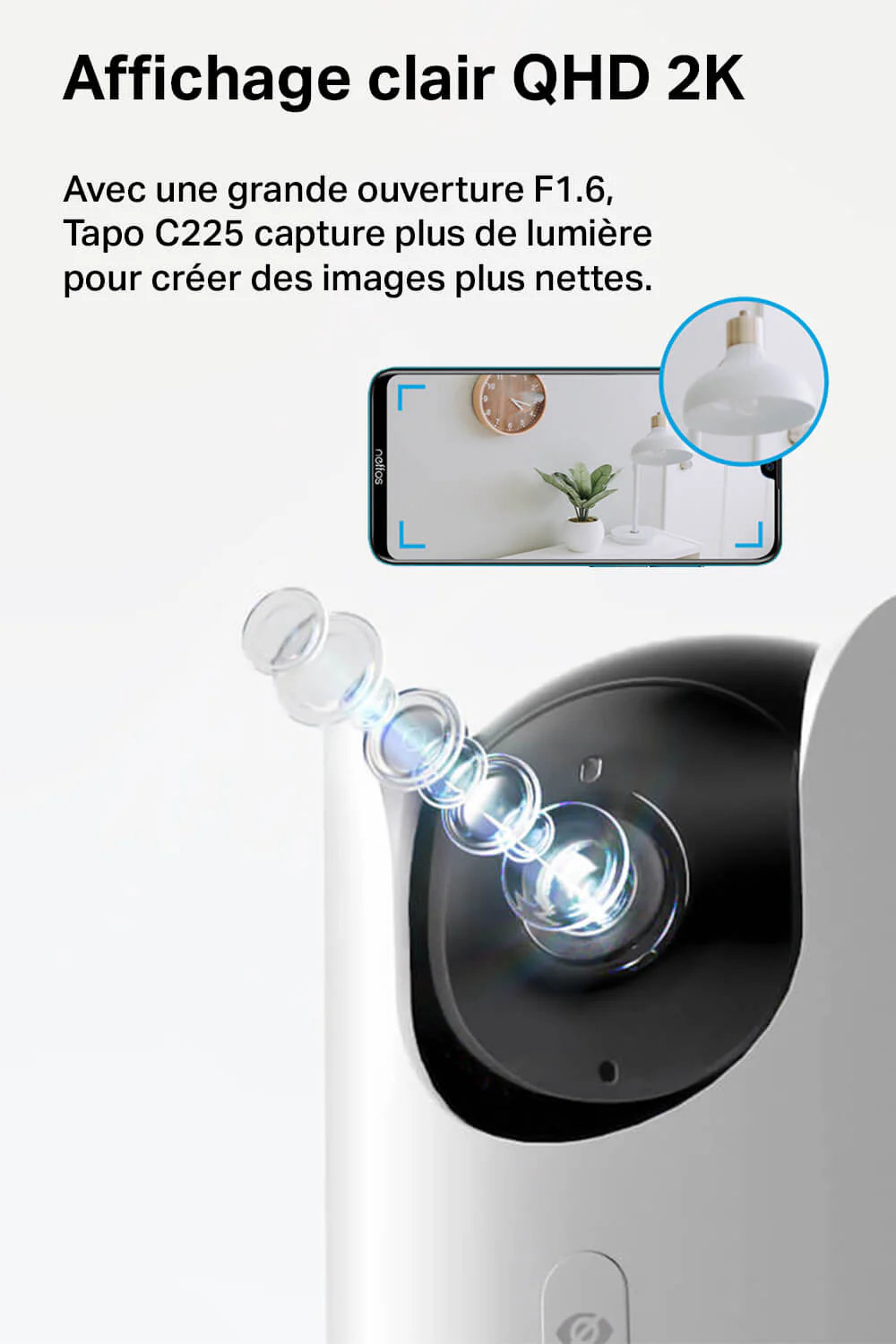 Compatible avec Alexa, Google Assistant et Apple HomeKit, la Tapo C225 s'intègre parfaitement à votre écosystème de maison intelligente. Vous pouvez contrôler la caméra par commande vocale et l'inclure dans vos scénarios domotiques pour une expérience de sécurité sur mesure. La connexion Wi-Fi 2,4 GHz et l'application Tapo pour iOS et Android assurent une installation et une utilisation simples et intuitives.