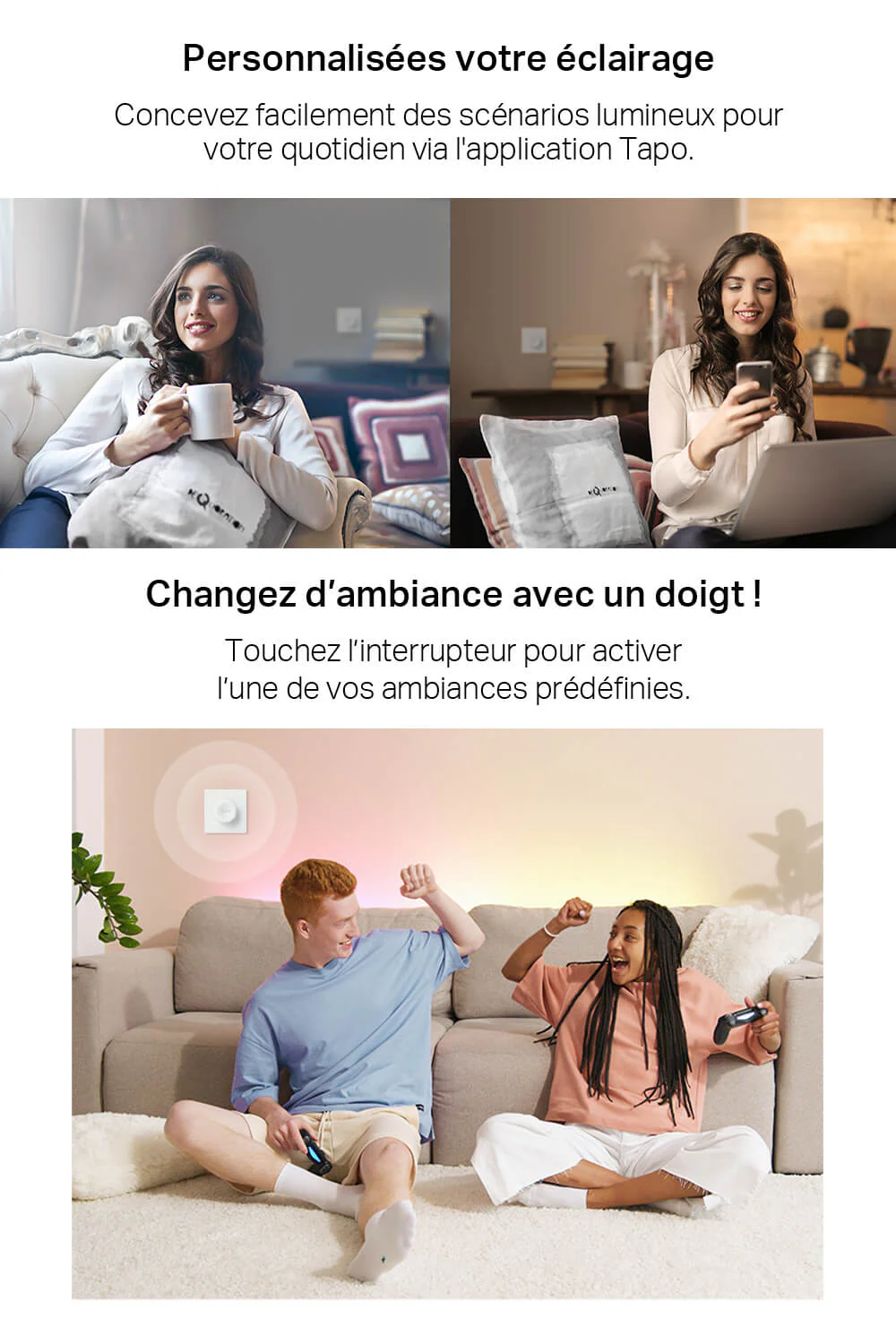 Le Tapo S200D brille par son efficacité énergétique. Alimenté par une simple pile bouton CR2032, il offre une impressionnante autonomie d'environ un an. Cette caractéristique élimine le besoin de câblage complexe, simplifiant considérablement son installation et son entretien. De plus, sa capacité à fonctionner comme variateur 3 ou 4 points sans recâblage le rend extrêmement polyvalent. Que vous souhaitiez créer une ambiance tamisée pour une soirée romantique ou augmenter la luminosité pour une séance de travail, le Tapo S200D s'adapte à tous vos besoins d'éclairage, contribuant ainsi à optimiser votre consommation d'énergie tout en améliorant votre confort au quotidien.