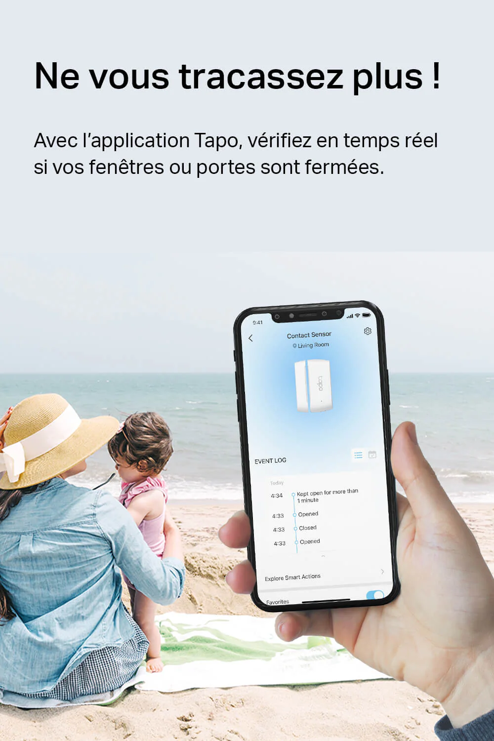 Le Tapo T110 est un détecteur d’ouverture/fermeture connecté pour portes, fenêtres, placards, réfrigérateurs ou boîtes aux lettres. Il permet de surveiller en temps réel l’état d’ouverture ou de fermeture et envoie des notifications instantanées sur smartphone via l’application Tapo. Ce capteur fonctionne avec un hub Tapo (H100/H200) ou Kasa (KH100), utilise une batterie CR2032 offrant jusqu’à un an d’autonomie, et s’installe facilement grâce aux bandes adhésives fournies, sans outils. Compact (61,4 x 37,5 x 12,3 mm) et de couleur blanche, il se fixe discrètement en intérieur et détecte le contact magnétique jusqu’à 15 mm d’écart. Le Tapo T110 prend en charge des actions intelligentes pour l’automatisation de la maison, comme allumer des lumières à l’ouverture d’une porte, et bénéficie de certifications internationales pour la sécurité et la conformité.